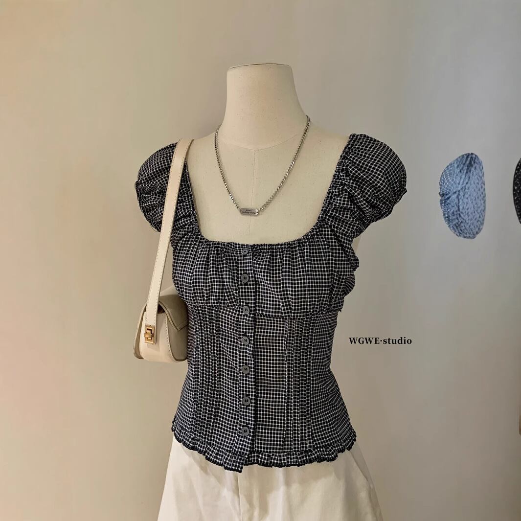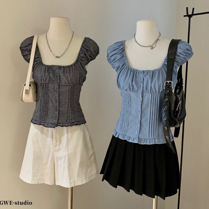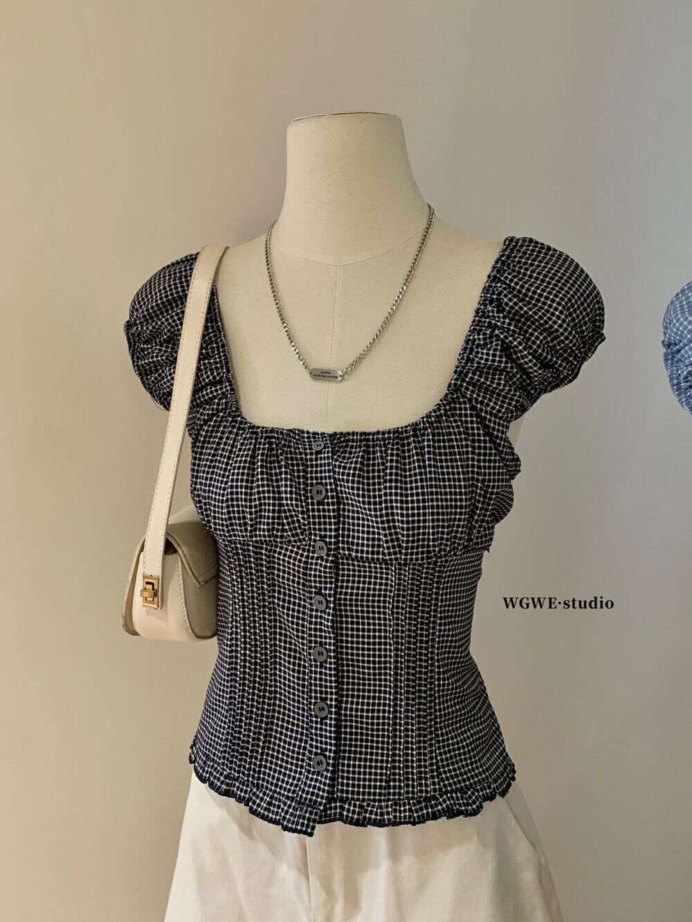 クラシックなギンガムチェックにトレンド感をプラスしたパフスリーブブラウス。